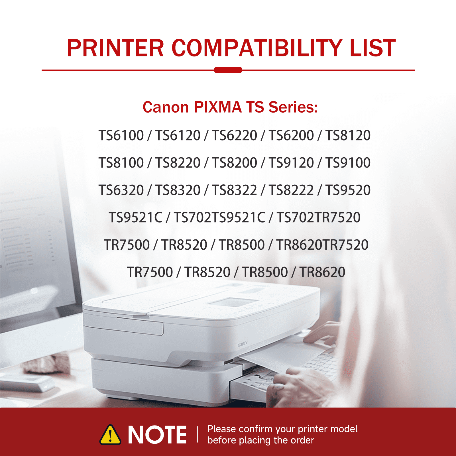 - Reliable Compatibility: Canon PIXMA TS Series: TS6100 / TS6120 / TS6220 / TS6200 / TS8120 / TS8100 / TS8220 / TS8200 / TS9120 / TS9100 / TS6320 / TS8320 / TS8322 / TS8222 / TS9520 / TS9521C / TS702
