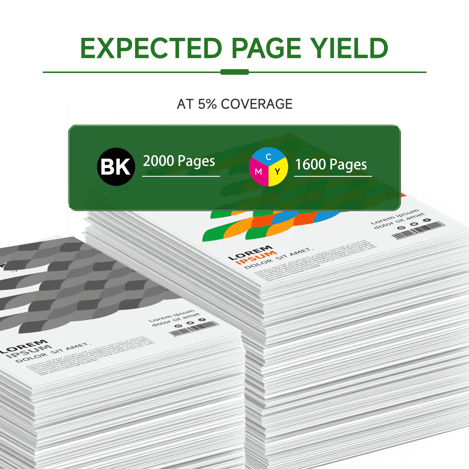 Black is 2000 pages per cartridge(at 5% coverage on A4 paper)